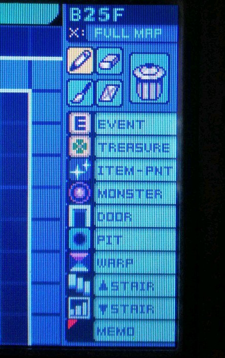 初代は「実際に歩いたマス」と「色塗っただけのマス」は見た目で区別できない。foeは実際に歩いたマスにいるものしか見えない。全滅するとマップを保存できるが初代は「実際に歩いたマス」は保存されてない。全滅地図を引き継ぐと塗られただけになってしまう。
