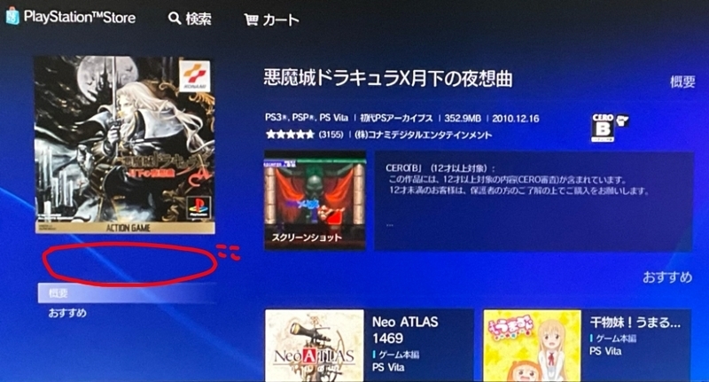 「概要」の上の位置にカーソルを合わせ(画像では見えないが、これで合っている状態)、〇ボタンを押す。