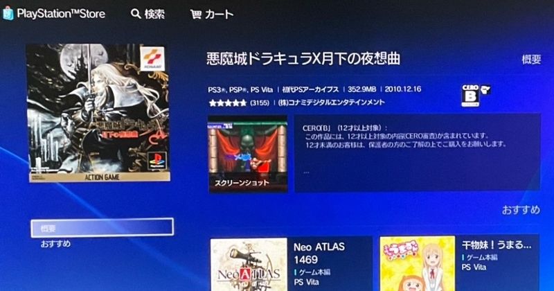 未購入だと「カートに入れる」だけだが、購入済のPS3ソフトだと「評価する」ボタンも消えている。